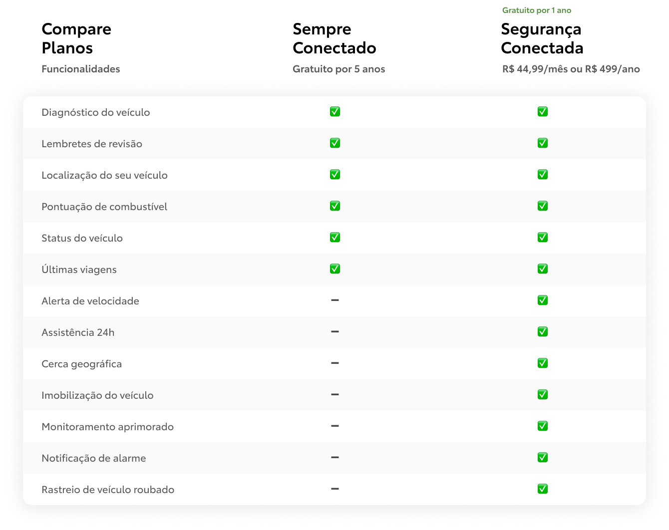 Tenha a gestão completa do seu carro na palma da sua mão. Monitore a saúde do veículo, acompanhe a segurança com rastreamento e cercas geográficas, tenha acesso ao status em tempo real e conectividade Wi-Fi para vários dispositivos. Tudo integrado para aprimorar sua experiência de direção com dados avançados e conectividade inteligente.**