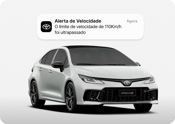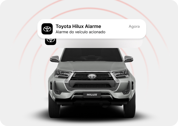 Proteja seu veículo com as notificações em tempo real da Toyota. Sempre que o alarme for acionado, seja por tentativa de invasão ou movimento suspeito, você será avisado no aplicativo, podendo acionar o rastreamento ou suporte imediato.*