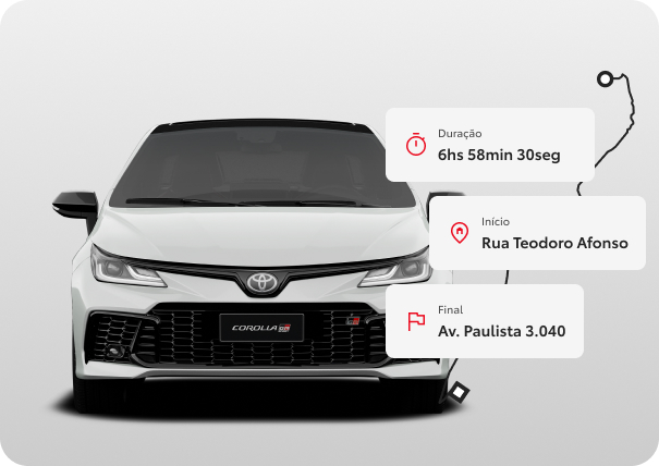 Em caso de roubo, a Toyota oferece rastreamento eficiente para recuperar seu veículo. Com uma simples solicitação via app ou Call Center, a localização mais recente será informada, aumentando suas chances de recuperação.*